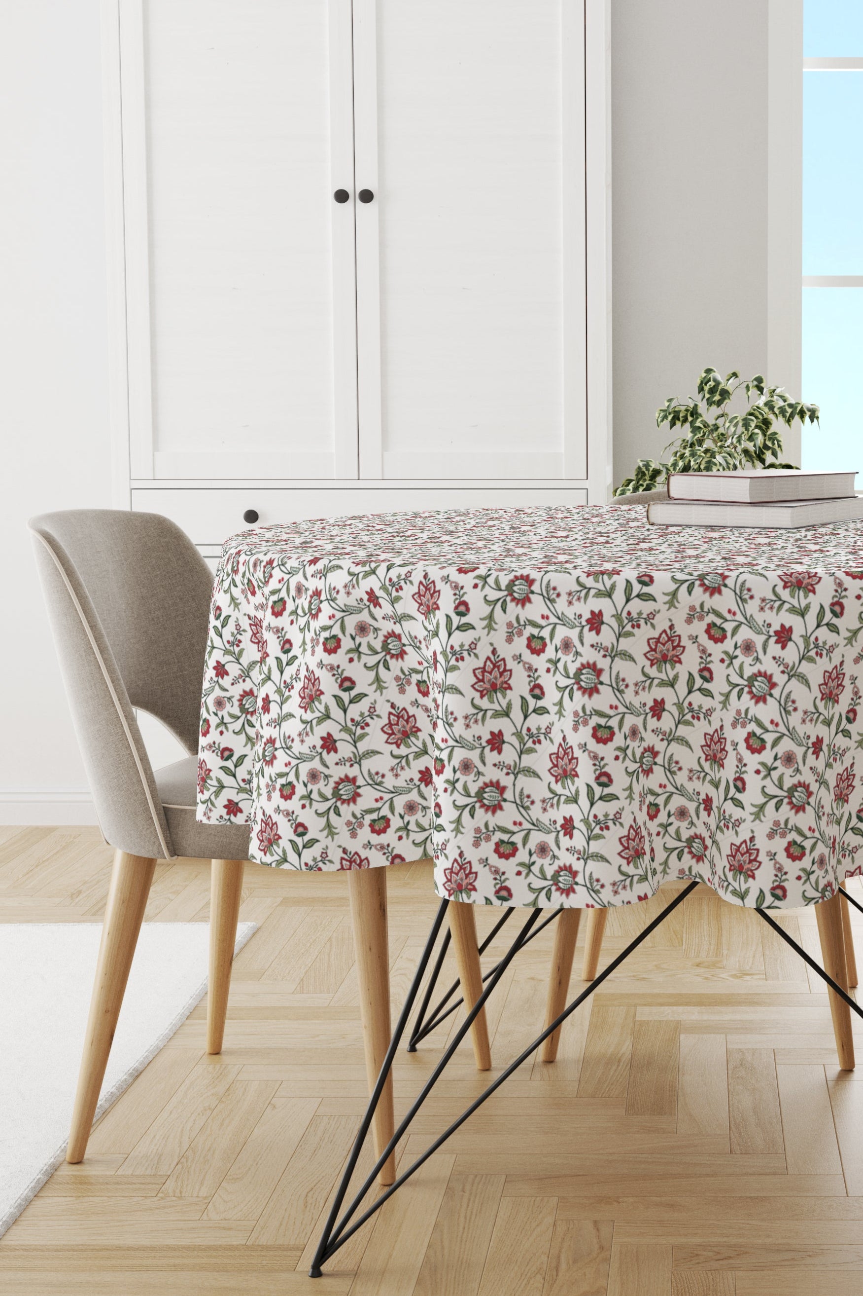 Red & Green Chintz Round Tablecloth